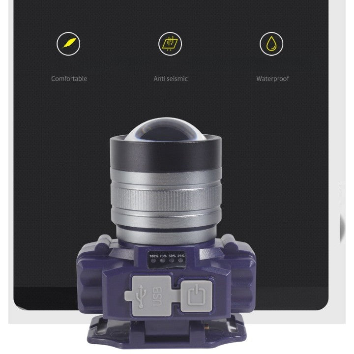 Lanterna LED de Montat pe Cap, cu Raza Lunga de Zoom, Far Telescopic, Reglabil, Rezistent la Apa, pentru Pescuit in Aer Liber, Camping, Lumina Puternica, Lanterna, 7.5x5x7 cm, Albastru