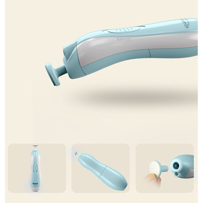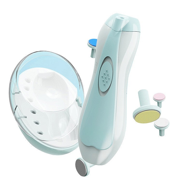 Pila Electrica Unghii pentru Bebelusi, 6 Piese, 15 x 4.5 x 3 cm, Silentios, 0-3 Ani, 4 Trepte de Viteza, Albastru