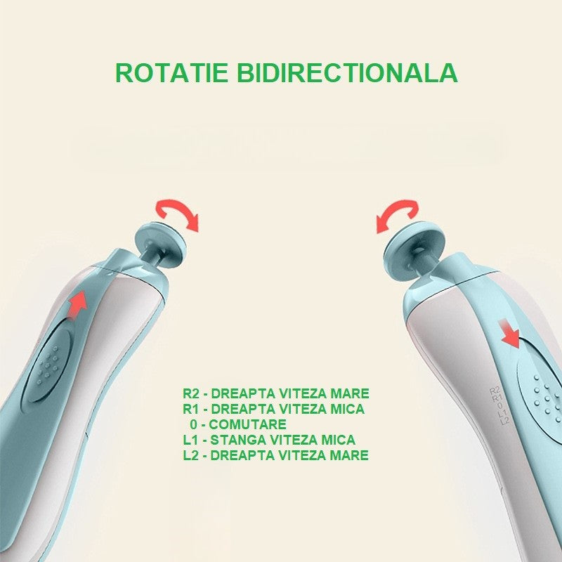 Pila electrică pentru unghii este concepută special pentru bebeluși, oferind siguranță și eficiență maximă în îngrijirea unghiilor. Este potrivită pentru bebelușii cu vârsta cuprinsă între 0 și 3 ani, fiind un instrument esențial pentru părinți. Cu un design compact și ușor, această pilă este ușor de utilizat și transportat.
